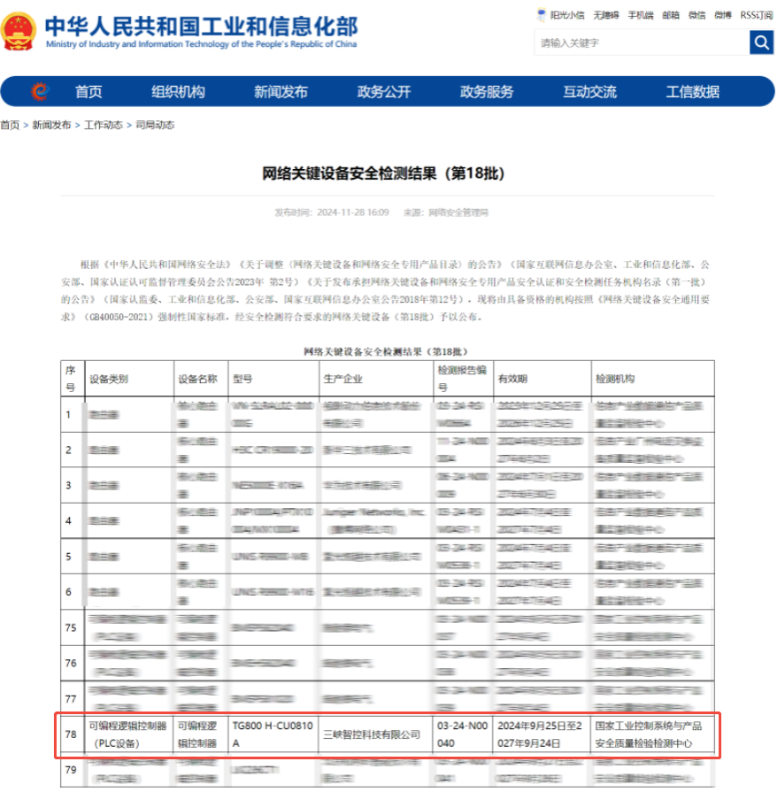 近日,三峽科技有限責任公司(簡稱三峽科技)下屬三峽智控科技有限公司(簡稱三峽智控)TG800大型智能控制器產品,正式在工信部網絡關鍵設備安全檢查結果目錄(第18...【詳細】